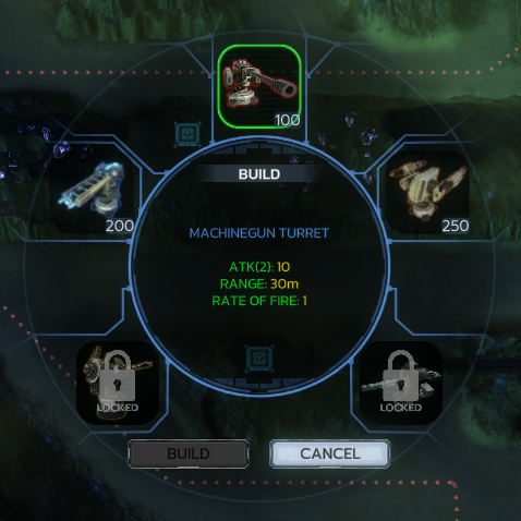 Radial Build Menu: Redesigned turret selection interface in preparation for more turrets to be added to the game